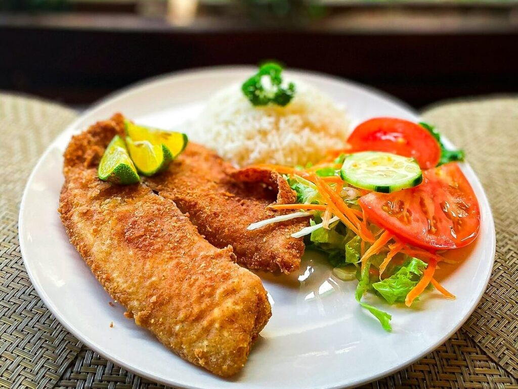 A generous 750g whole fish, seasoned with our traditional blend of garlic and spices, fried to a perfect golden crisp. Served with rice, fries, and our signature Salsa Criolla.